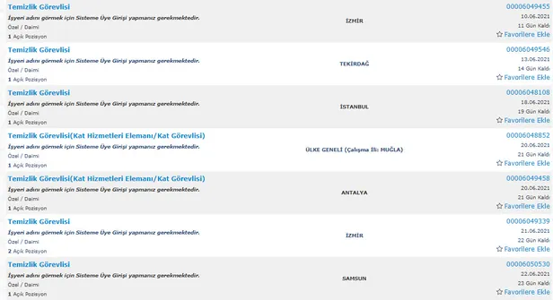 İŞKUR tarafından Türkiye geneli en aktüel iş bültenleri yayınlandı. Yayınlanan ve müracaatı devam eden iş bültenleri kapsamında, Türkiye geneli en az ilkokul mezunu 666 kişilik temizlik görevlisi alımı yapan İŞKUR, müracaatları online olarak da kabul ediyor. Özel sektör ve kamu kurumu bünyesine yapılacak olan alımlara başvuru yapacak adayların en az ilköğretim mezunu olmaları ve sağlık problemlerinin bulunmaması gerekmektedir.