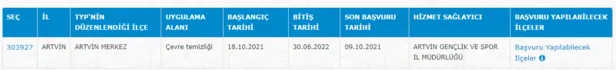 Gençlik ve Spor Bakanlığı Alımları: 42 değişik kentte olmak üzere Çevre temizliği, park düzenlemeleri bölümünde 1262 personel alınacak. Şehre göre dağılım amacıyla Buraya Tıklayınız.
