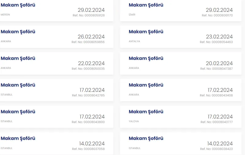İstanbul - 17.02.2024, Ref. No: 00008042785; 17.02.2024, Ref. No: 00008043800; 14.02.2024, Ref. No: 00008037058; 14.02.2024, Ref. No: 00008038423; 7.02.2024, Ref. No: 00008022602; 7.02.2024, Ref. No: 00008024157