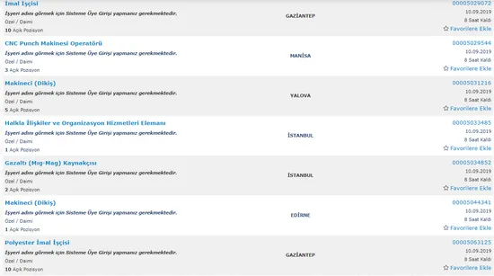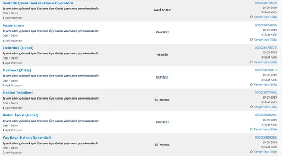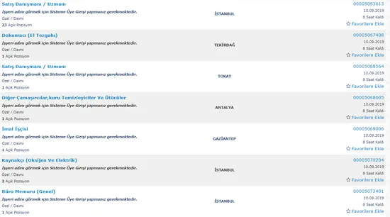 İŞKUR AÇIK İŞ İLANLARI