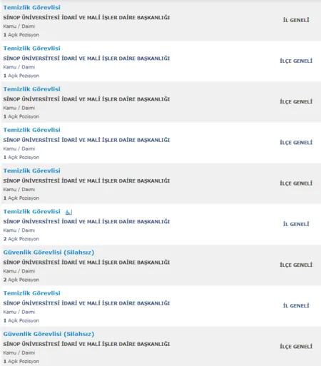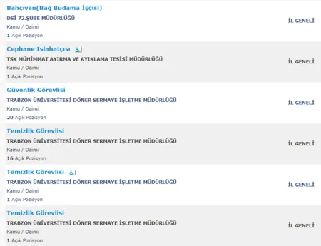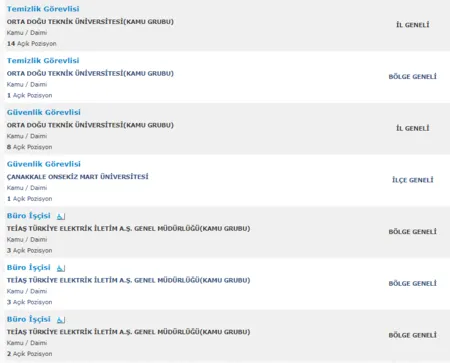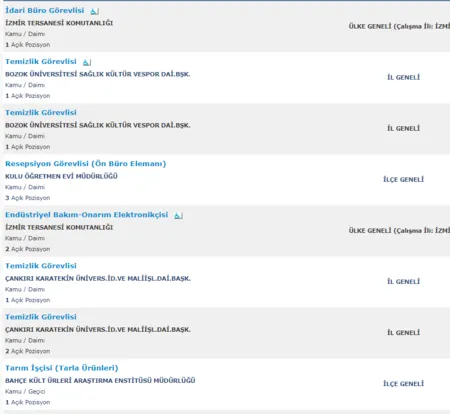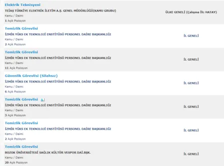 İŞKUR 'daki kamu iş ilanlarında kadrolar şu şekilde: