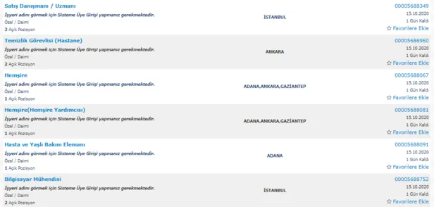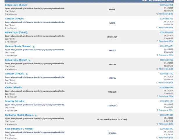 Açılan ekranda iş ilanlarına bakabilmek için ilk adımda iş arayan ya da iş veren olma durumunun belirtilmesi gerekir. Sonrasında aranılan özel bir pozisyon, nitelik, meslek, beceri veya firma adı varsa o yazılmalıdır. Eğer genel geçer bütün ilanları görüntülemek istiyorsanız; bu kısmı boş bırakabilirsiniz. Sonrasında aynı sayfa üzerindeki çalışma yeri, ülke, il, ilçe, ilan no, ilan tarihi, meslek, öğrenim durumu, iş yeri türü, engel durumu, vardiya seçenekleri, iş yeri ünvanı gibi bilgiler girilerek "ara" sekmesine basmalısınız. Herhangi özel aradığınız bir ilan, iş yeri yoksa; ilan no, ilan tarihi ve iş yeri ünvanı sekmelerini boş bırakabilirsiniz.