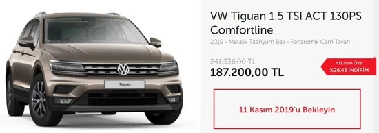 11.11 indirimi ile Volkswagen Tiguan, Passat, Polo ve Golf otomobiller ne kadar? n11 araba kampanyası