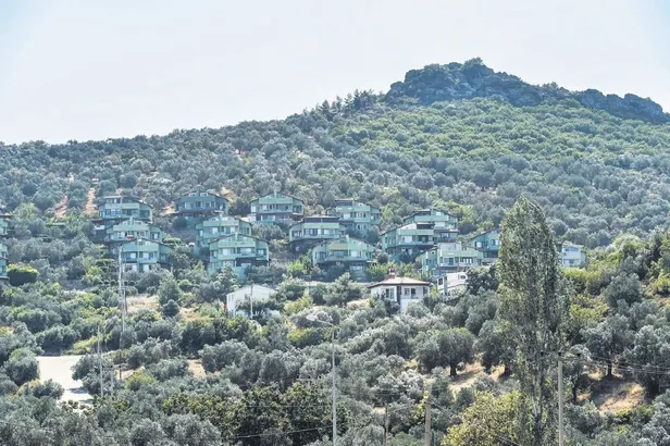 Burhaniye’ye bağlı Pelitköy’de 14 yıl önce yüzlerce zeytin ağacı kesilerek müstakil villaların olduğu bir site yapıldı. Ardından tepkiler üzerine yapılan doğa katliamını gizlemek için villaları yeşile boyadılar.