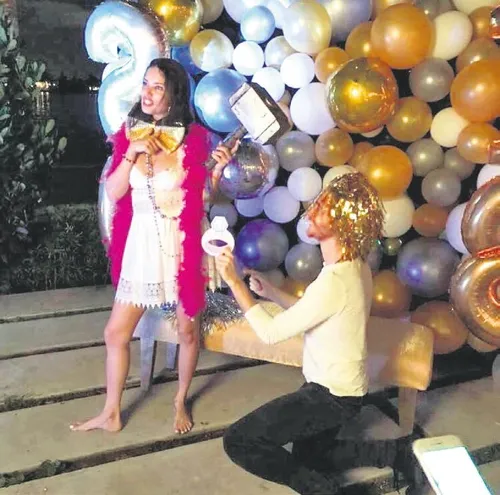Lima ile Metin Hara gece boyunca eğlenceye doydu. Victoria's Secret meleği, parti için evinin bahçesini gece kulübüne dönüştürdü. Bir ara Hara'nın kartondan yaptığı tektaş yüzükle Lima'nın önünde diz çökmesi ise "Yakında düğün var" dedirtti. Reklam aşkı iddialarını yalanlayıp ilişkilerini doludizgin sürdüren ikilinin bu karesi herkesi heyecanlandırdı.