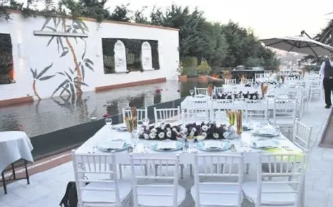 Düğün için hiçbir masraftan kaçınmayan işadamı, lüks köşkünün bahçesini özel olarak hazırlattı.