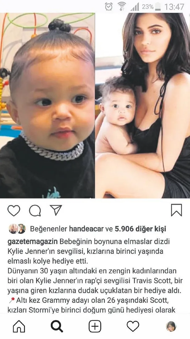 ABD'li yıldız Kylie Jenner'ın kızı Stormi'ye elmas kolye hediye etmesi Hande Acar'ın tepkisini çekti