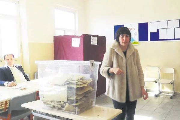 Oyuncu Pelin Karahan, Beykoz'daki Şehit İsmail Kefal İlkokulu'nda oyunu kullandı. Güzel oyuncu, makyajsız olduğu için de sandık başında güneş gözlüğüyle poz verdi.