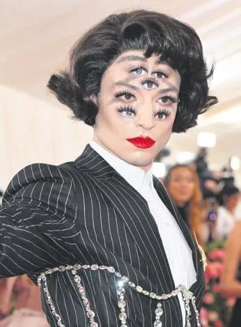 Gecenin en ilginç isimlerinden birisi de Amerikalı şarkıcı Ezra Miller'dı. 26 yaşındaki sanatçı, makyajıyla göz yanılttı. Yüzüne kendi gözleri dışında beş göz daha ekleyen Miller, makyaj konusunda adeta çığır açtı. Şarkıcı ayrıca, gözleri olmayan bir maskeyle kombinini tamamlandı.