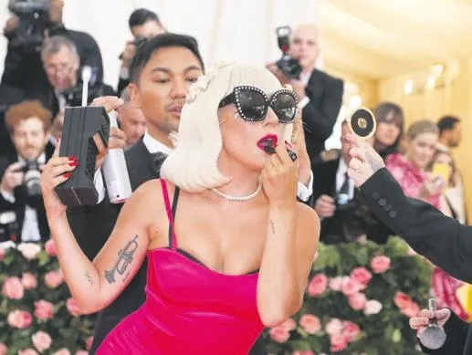 Şarkıcı Lady Gaga, dört kostümü üst üste giydi. Gaga, kırmızı halıda makyaj yapmayı da ihmal etmedi.