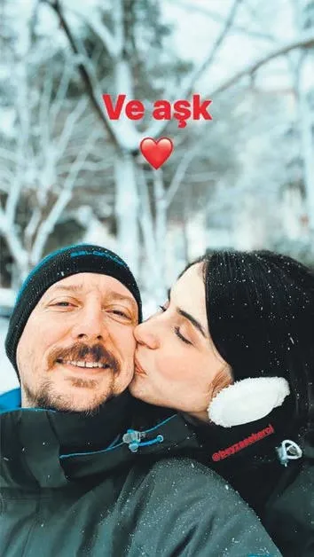 Engin Hepileri, eşi Beyza Şekerci'nin kendisini karlar altında öperken çektiği bu karesine "Ve aşk" diye yazdı.