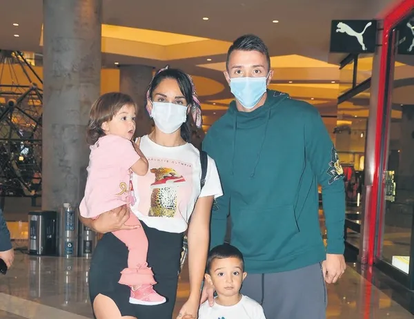 Muslera ve iki çocuğuyla poz veren 31 yaşındaki güzel yengenin tişörtü ve ayakkabısı da ultra lüks markaların aksine Puma imzalıydı.