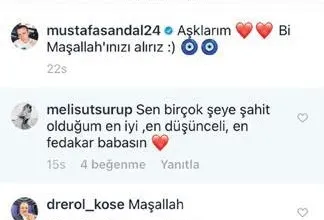 Eski eşi Mustafa Sandal'ı Melis Sütşurup'tan kıskandığı için haciz davası açtığı iddia edilen Emina Jahovic'i kızdıran yorum. Melis Sütşurup, Mustafa Sandal'a "Sen birçok şeye şahit olduğum en iyi, en düşünceli, en fedakar babasın" diyerek destek verdi.