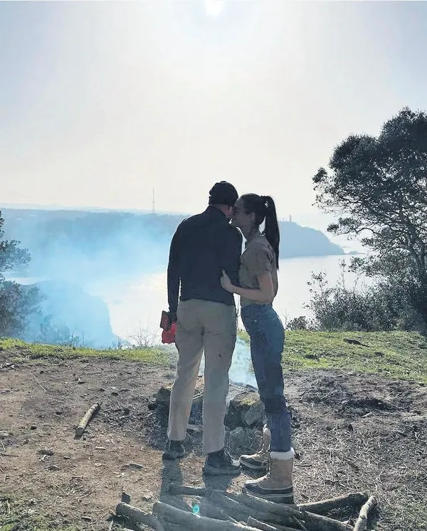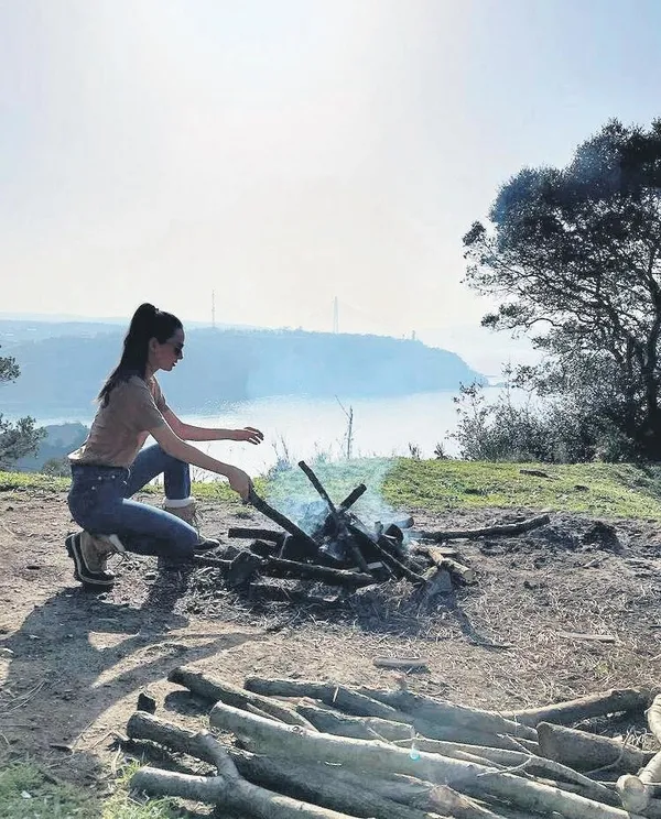 İkili, Boğaz'da romantik anlar yaşadı. Özilhan, kamp ateşi başında böyle poz verdi.