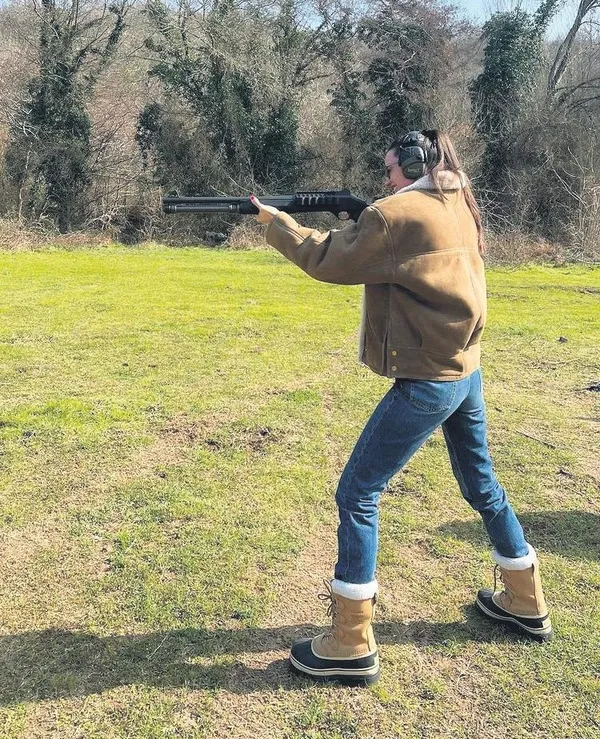 Sosyetik güzel, bir ara eline tüfeği alıp hedefi vurmaya çalıştı.