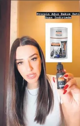 Instagram'da 301 bin takipçisi olan 35 yaşındaki yenge, önceki gün hesabından bir ağız bakım ürünün tanıtımını yaptı.