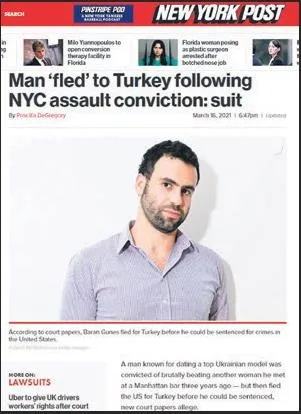 New York Post, 2019 Mart'ta ceza alıp Mayıs'ta hakkında yakalama kararı çıkan Türk gencin, ABD'den Türkiye'ye kaçtığını yazdı. Norveçli mimar Amanda Kajarvik, kabusun yaşandığı Manhattan Yüksek Mahkemesi'nde Baran Güneş hakkında geçtiğimiz Cumartesi günü yeniden dava açtı.