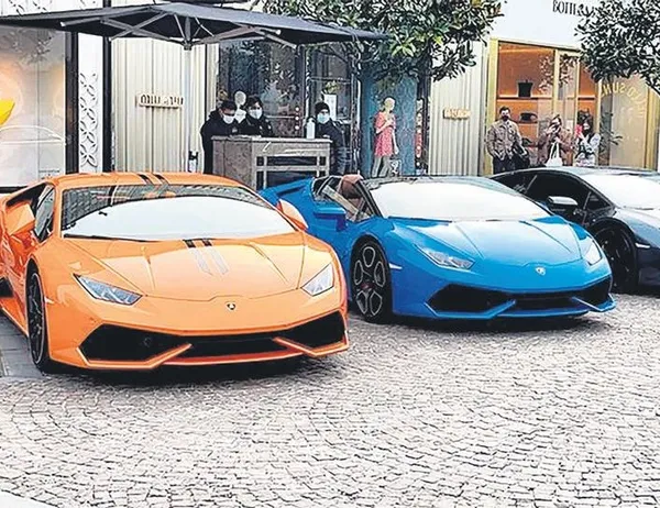 Yabancıların da alışveriş için akın ettiği AVM'nin Markalar Sokağı kısmına park edilen milyonluk araçlar, Türkiye'deki zenginliğin de açık bir göstergesi.