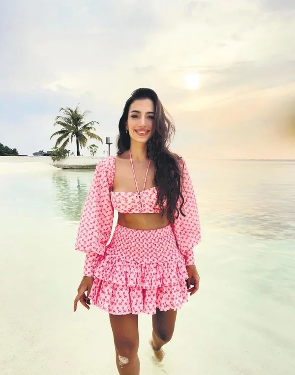 33 yaşındaki, sosyetik güzel, eşi Sami Kiresepi ile tatil için gittiği Maldivler'de köpekbalıklarının olduğu denize gözünü kırpmadan atladı.