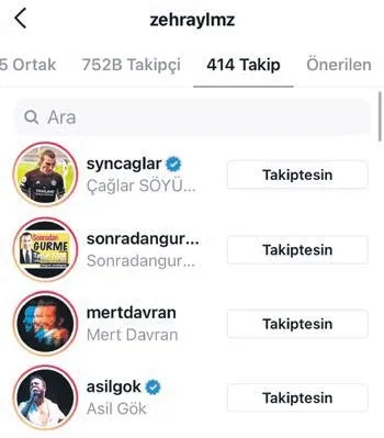 24 yaşındaki yıldız, önceki gün Instagram'da güzel oyuncu Zehra Yılmaz'ı takibe aldı.