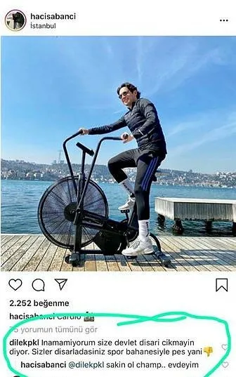 Hacı Sabancı da daha önce Kanlıca'daki yalısında bisiklet ile kardiyo yaparken çekilen fotoğrafıyla Instagram'da havasını attı.