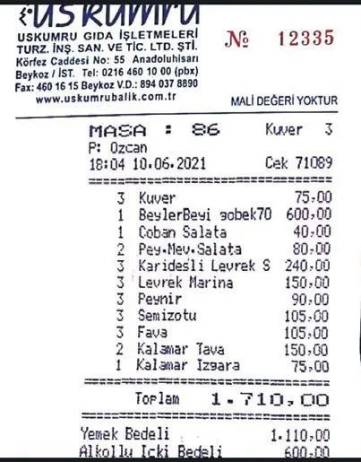 Pazarda 3/4 TL'ye satılan semizotunun lüks mekanda sadece bir porsiyonunun 47 TL olmasının yankıları sürerken benzer bir hesap da İstanbul'dan geldi.