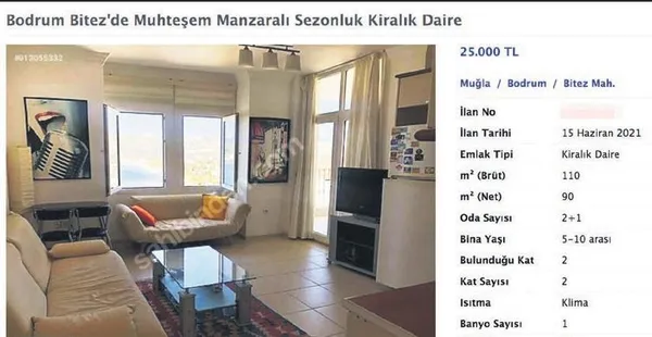 Geçtiğimiz yıl Bitez'de aylık kirası 3 bin 500 lira olan dairenin bu seneki fiyatı aylık 25 bin liraya çıktı. Hem de "pazarlık yok" denildi.