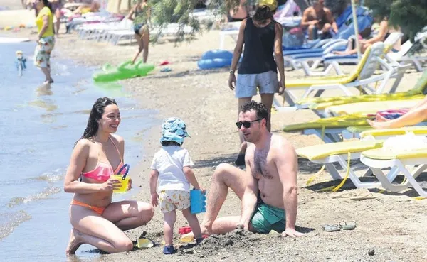 Akın önceki gün Bodrum'daydı. Güzel oyuncu, eşi Atakan Koru ve oğlu Demir'le birlikte Ortakent'te bir halk plajındaydı.