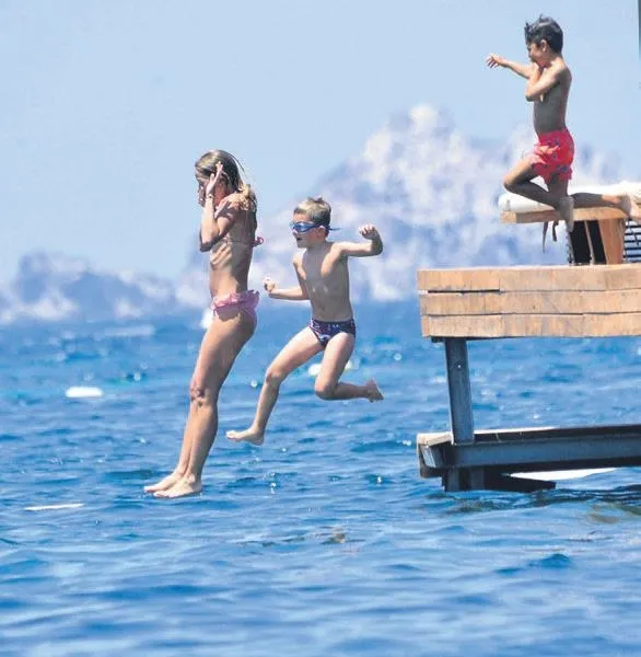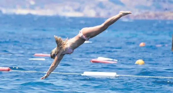 Yalıkavak'ta keyif yapan İşçil, adeta denize atlama şovu yaptı. İşçil, ilk önce balıklama daldı. Oyuncu, ardından bombalama stili denedi. Son olarak oğlu Azur'la çivileme stili kendisini denize bıraktı.
