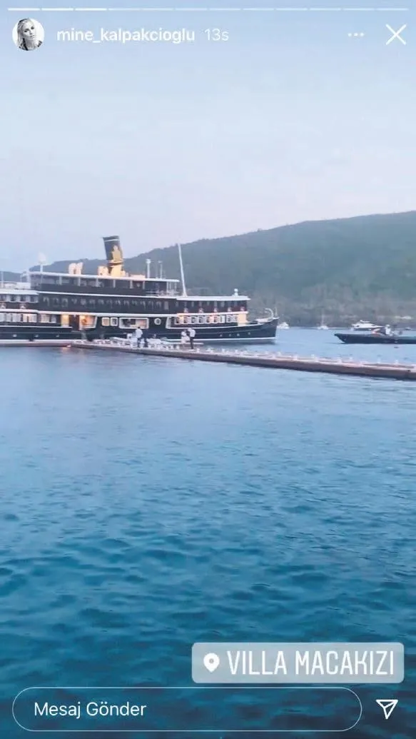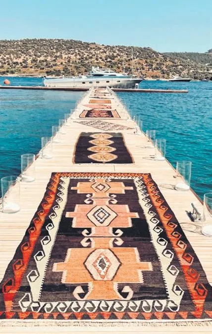 Maçakızı'na gelen davetliler, kırmızı halı yerine iskeleye serili kilimlerinin üzerinden geçerek mekana giriş yaptı.