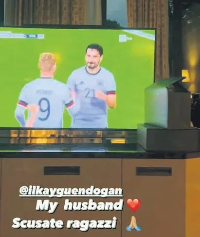 Almanya, UEFA Uluslar Ligi'ndeki rakibi İtalya'yı 5-2 mağlup etti. Almanya'nın gollerinden birini Türk asıllı İlkay Gündoğan attı. Kıran kırana geçen mücadeleyi evinden izleyen Gündoğan'ın Fas asıllı İtalyan eşi Sara Arfaoui, yıldız futbolcuya destek paylaşımları yaptı. Güzel model, İlkay'ın gol sevincini "Benim kocam, üzgünüm beyler" mesajıyla paylaşıp kalp emojisiyle de yıldız futbolcuya aşkını bir kez daha ilan etti. Sara Arfaoui'nin bu paylaşımı, "Yengeden İlkay Gündoğan'a kocaman destek" yorumları yaptırdı.