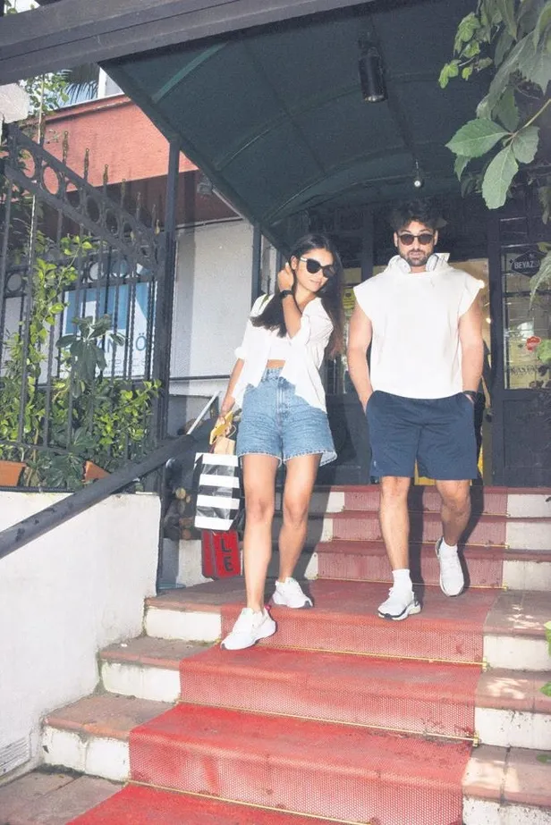 Oyuncu çift Ayça Ayşin Turan, önceki gün sevgilisi Alp Navruz ile Etiler'deki kuaföründen çıkarken görüntülendi. Film çekimi için Asos'a giden Turan'ı sevgilisi kuaförden uğurladı. Çiftin şort, ayakkabı ve tişört uyumu dikkatlerden kaçmadı.