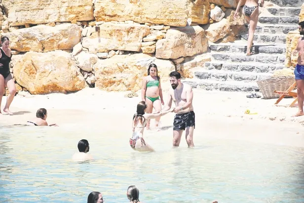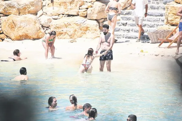 Ancak vücudunun tamamını ıslatmadı. Denizin soğuğuna aldırmadan keyfini çıkaran Şahinkaya, bir süre sonra sevgilisiyle duş alıp arkadaşlarının yanına geçti.