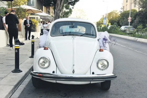 Düğün arabası olarak, Serkan Keskin'in 25 yıldır sahibi olduğu klasik otomobil kullanıldı.
