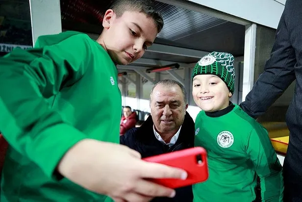Fatih Terim, dünkü maç öncesi Konyasporlu çocuklarla fotoğraf çektirdi.