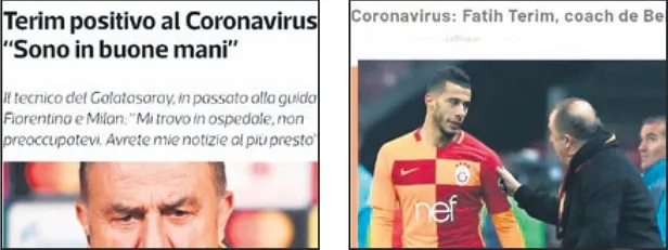 Fatih Terim'le ilgili gelişmeler dış basında geniş yankı buldu… Tuttosport, Terim'in "Emin ellerdeyim" sözünü başlığa taşırken, Bild tecrübeli hocanın durumunun iyi olduğunu duyurdu. Marca, "Ligleri durduran Türkiye'de Fatih Terim'in testi pozitif çıktı" dedi.