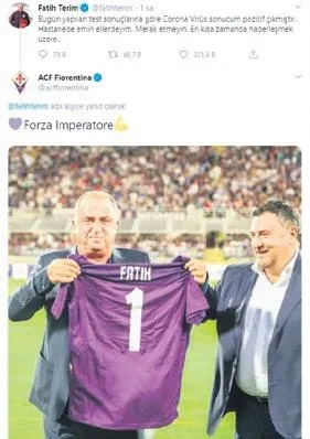 Terim'in eski kulübü Fiorentina da tecrübeli hocayı unutmadı. İtalyan ekibi, Terim'in mesajının altına "Forza Imparatore (Haydi İmparator)" yorumunu yaptı.