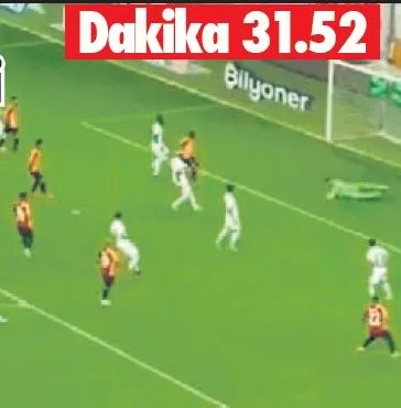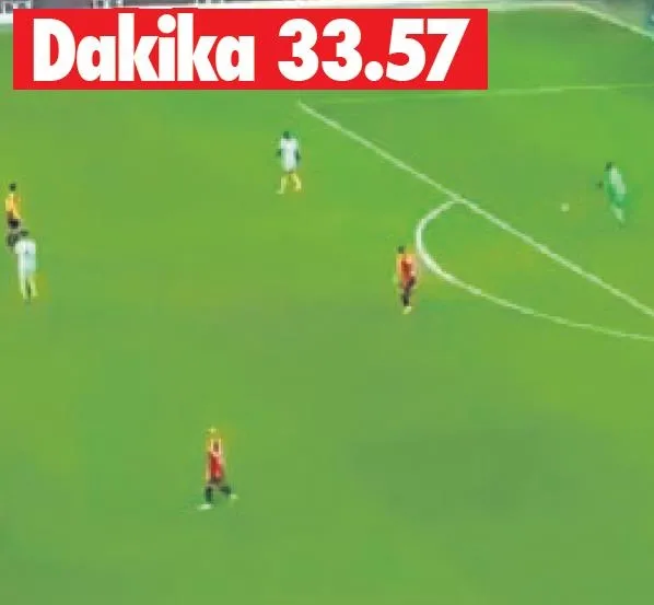 Günay'ın topu elden çıkarma anı 32.12'de geçiyor. Yani top tahmini olarak 18 saniyede yani 32.10'da Günay'ın elinden çıkıyor.