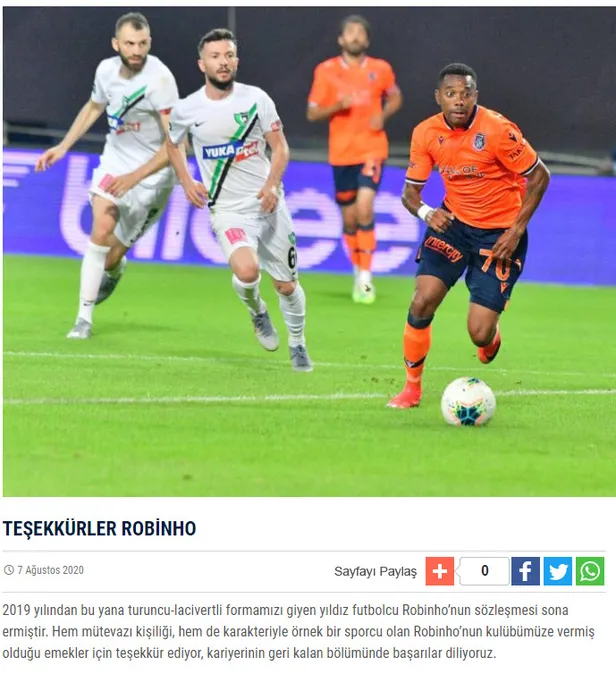 Şampiyon Başakşehir'de yılın ilk ayrılığı gerçekleşti. Dünyaca ünlü futbolcu Robinho'ya kulüpten yapılan açıklamayla veda edildi.