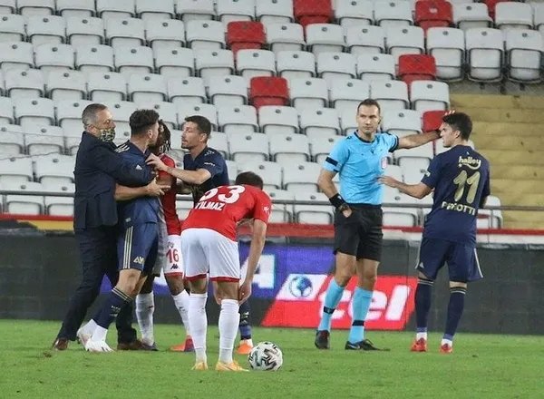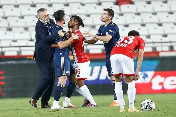 Süper Lig'in 7. haftasında Fenerbahçe, deplasmanda Antalyaspor'u 2-1 mağlup etti. Fenerbahçe İdari Menajeri Volkan Ballı, Sarı-lacivertlilerde maçın 90+7. dakikasında kırmızı kart gören ve sinirlerine halim olamayan Sinan Gümüş'ü sakinleştirmek için sahaya girdi.
