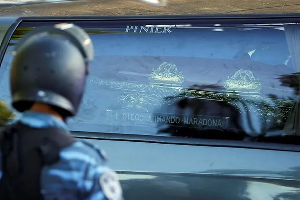 Başkent Buenos Aires'e yaklaşık 30 kilometre uzaklıktaki Bella Vista Mezarlığına hayranlarının oluşturduğu uzun bir konvoy ve güvenlik güçlerinin eşliğinde götürülen Maradona'nın naaşı anne ve babasının yanına defnedildi.