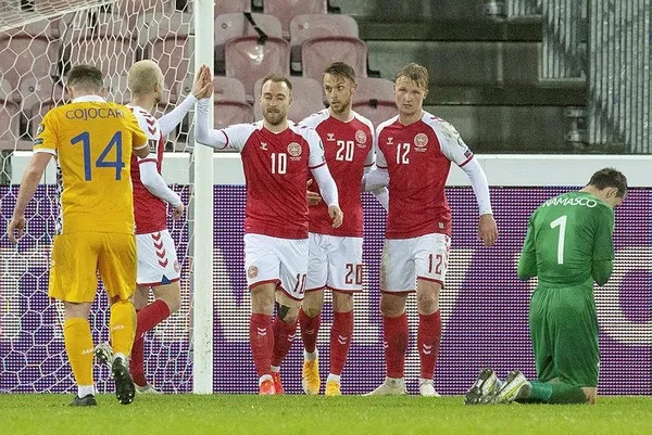 Dünya Kupası Elemeleri F Grubu'nda Danimarka, ağırladığı Moldova'yı 8-0 gibi farklı bir skorla yendi. Ev sahibi ekibin gollerini, bir penaltıdan olmak üzere Dolberg (2), Damsgaard (2), Stryger Larsen, Jensen, Skov ve Ingvartsen kaydetti. Bu skorla Danimarka, Dünya Kupası Elemeleri'ndeki en farklı galibiyet rekorunu kırdı.