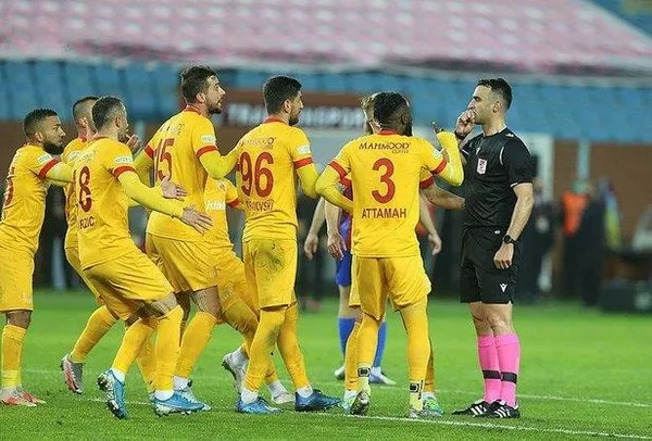 Trabzonsporlu futbolcular Kayseri maçının 60. dakikasında Aziz Behiç'in ceza sahasında Flavio'yu ittiğini öne sürerek penaltı bekledi. Hakem Atilla Karaoğlan pozisyon için 'devam' derken bu karar tartışma yarattı.