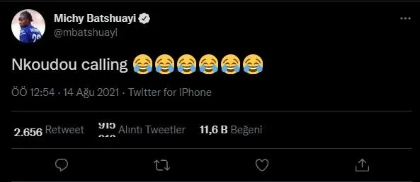 Batshuayi sosyal medya hesabı Twitter üzerinden Beşiktaş taraftarını heyecanlandıran bir paylaşıma imza attı. Yıldız oyuncu 'Nkoudou arıyor' paylaşımında bulundu.