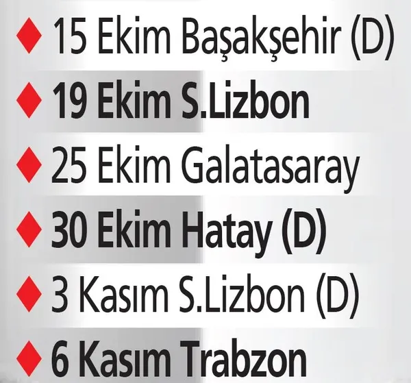 Milli aradan sonra Başakşehir deplasmanına çıkacak olan Beşiktaş ardından sırasıyla Sporting Lizbon, Galatasaray, Hatayspor (D), Sporting Lizbon (D) ve Trabzonspor ile karşılaşacak.