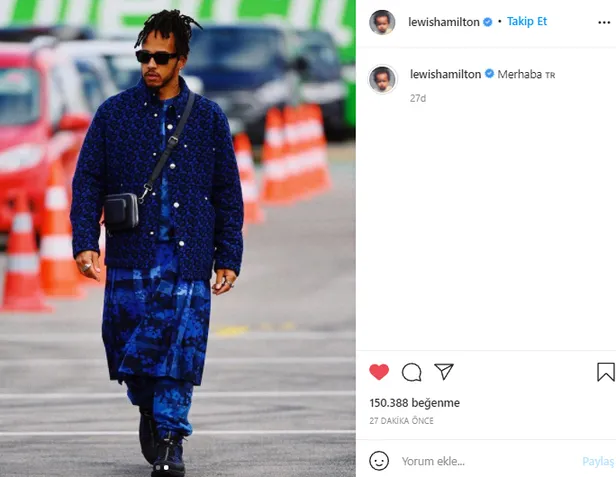 Formula 1 pilotu Lewis Hamilton'dan Türkçe paylaşım! 7 kez dünya şampiyonunun Türkiye Grand Prix'si tarzı çok konuşuldu