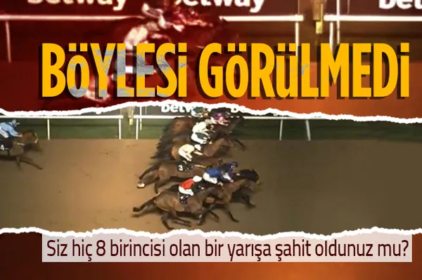 İngiltere'de düzenlenen bir at yarışı daha önce eşi benzeri görülmemiş bir olaya sahne oldu. Wolverhampton'daki Betway Insider yarışında tam 8 at finişi birlikte geçti.