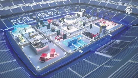 Yeni Bernabeu Stadı'nın hazırlanan simülasyonunda fuar alanları ve kongrelerin yapılacağı alanlar gösterildi.