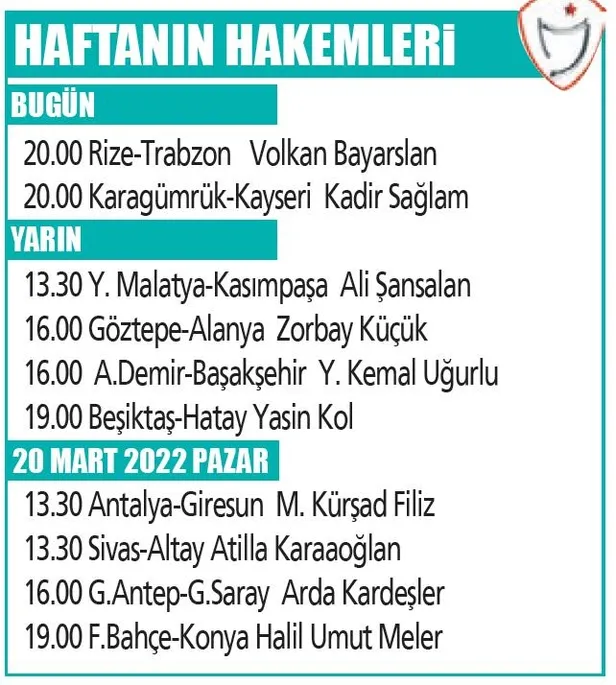 Süper Lig'de 30. hafta maçlarının hakemleri dün açıklandı. TFF'den yapılan açıklamada lider Trabzonspor'un bugün saat 20.00'de deplasmanda Çaykur Rizespor ile oynayacağı karşılaşmada Volkan Bayarslan düdük çalacağı ifade edildi.