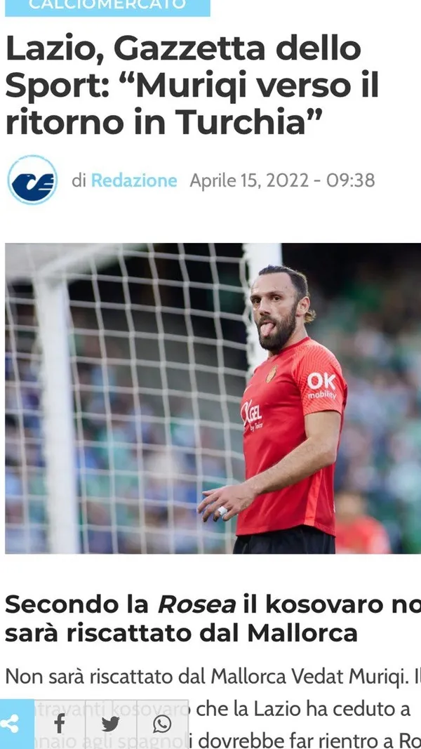 La Gazetta dello Sport haberinde, "Vedat Muriç Türkiye'ye geri dönecek. Aslında hem eski kulübü Fenerbahçe hem de Galatasaray onun peşinde" ifadelerini kullandı.